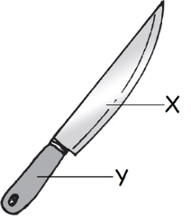 What are the materials used to make the parts labelled X and Y of the knife?